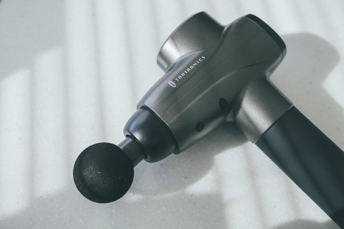 TaoTronicsのマッサージガン「TT-PCA003」(実勢価格:1万6599円)は、凝り具合や部位に合わせて6種類のマッサージヘッドが選べ、速度も10段階で調整できるという、多機能マシンです。