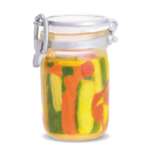 ピクルスに用いる「セラーメイト 密封びん1L」も野菜の色鮮やかさはもちろん、蓋のパッキンや金具部分など、細部までこだわっており、蓋は開閉可能。サイズは約W2.5×H3.6cmです。