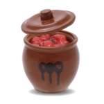 梅干しに使われる「常滑焼 漬物瓶」は真っ赤な梅干しパーツと、商品購入時に「かめ」の中に入っている説明書が付属。梅干しを漬けた状態と、商品を購入した際の状態を再現できます。サイズは約W2.6×H3cmです。