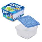 プラスチック保存容器の代名詞である「ジップロックコンテナー 正方形1100ml 2個入」は容器2個セットに紙パッケージが1個付属。おなじみのブルーのフタや特徴的な凹凸、容器のクリア感を忠実に再現しています。サイズは約W2.5×H1.3cmです。