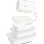 1934年の創業以来、ホウロウ作り一筋の「野田琺瑯」が手がける「野田琺瑯 WhiteSeriesレクタングル深型S、M、L」もしっかり再現。乳白の風合いや、独特の光沢感の表現に成功しており、3点セットの裏面には野田琺瑯のロゴも入っています。サイズはSが約W2.5×H0.8cm、Mが約W2.9×H0.9cm、Lが約W3.5×H1cmです。