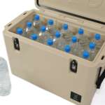 本体外寸は64×36.5cm、高さH39.5cm。2リットルのペットボトルを立てて入れられる絶妙なサイズ感も魅力。本体そのものの重量は11kgで、最大53時間氷を残存させられるだけの保冷性能を備えます。