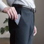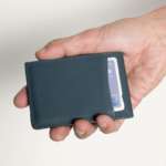 サイズもふたつ折りした状態で、約67×100mmと名刺ケースよりもコンパクトで、厚みも最大で約18mmほどなので、パンツのフロントポケットに入れていてもシルエットを崩さずに持ち運べます。