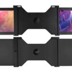 この「Aqual モバイルデュアルディスプレイ」、ごくざっくり説明すればノートPCの背面に直接取り付けて使用するモバイルディスプレイなんですが、ユニークなのは液晶パネルをあらかじめ2枚備えた “ニコイチ仕様” だということ!