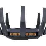 「RT-AX89X」は、5GHz/2.45GHzの両帯域に対応できるWi-Fi 6(IEEE 802.11ax)対応無線ルーターで、一度により多くのデータを送れる1024QAMに対応しています。また、5GHz通信は8ストリーム合計で最大4804Mbps、2.4GHz通信は4ストリーム合計で最大1148Mbpsの通信が可能です。特に、5GHz帯では、一般的な802.11ac 4x4デュアルバンドWi-Fiルーターと比べて、約2.8倍ものスピードアップが実現できる計算。接続機器の多い環境でも遅延の少ないスムーズなワイヤレス通信が可能となっています。
