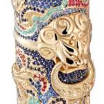 Au750ソリッドゴールドのキャップとボディには、明王朝の工芸にインスパイアされたドラゴンが生き生きと描かれており、サファイア、ルビー、トルマリン、ダイヤモンドのパヴェが周囲を彩っています。尻軸内には、手作りの精巧なミニチュアオルゴールがセットされており、ブルーサファイアのパヴェで装飾されています。これは、中国の儀式や宮廷音楽で使用される伝統的な王室の楽器へのオマージュとして搭載されたものです。