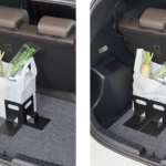 底面は、車の荷室に貼りつきやすい面ファスナー仕様になっているので、荷物の揺れをしっかりキャッチ。荷物の量や大きさによって、角で止める、挟んで止める、並べて止めるなど、使い方は自由自在。傾いて斜めになっても倒れにくい構造で、少量から大量の荷物まで、食材や日常品をしっかりサポートします。