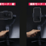 スマホの縦横も装着したままボタンひとつで切り替え可能。素早く動く被写体向けに、より早くジンバルが追従する “ファストフォローモード” も搭載されています。