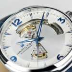 コンテンポラリーなデザインとスタイリッシュなカラーを特徴とする、ハミルトンの「ジャズマスター」コレクション。そのネーミングは、多様な文化と歴史的な背景の融合のなかに生まれ、洗練を深めながら多彩な進化を続けるジャズミュージックに由来するもの。なかでも、「ジャズマスター オープンハート」は、繊細なカットを施したセミスケルトンダイヤルが特徴的な人気モデルです。