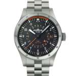 「フリーガー F43 トリプル GMT」(49万5000円)は、43mm径のケースと軽くて頑丈で錆びにくいチタンブレスレットを採用。