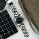 オリジナルモデルの特徴である、ブラックダイヤル、スーパールミノバを施したインデックスと針、オレンジ色のクロノグラフ秒針や12時位置のマークといったスタイルは継承しつつ、現代的な要素を取り入れています。