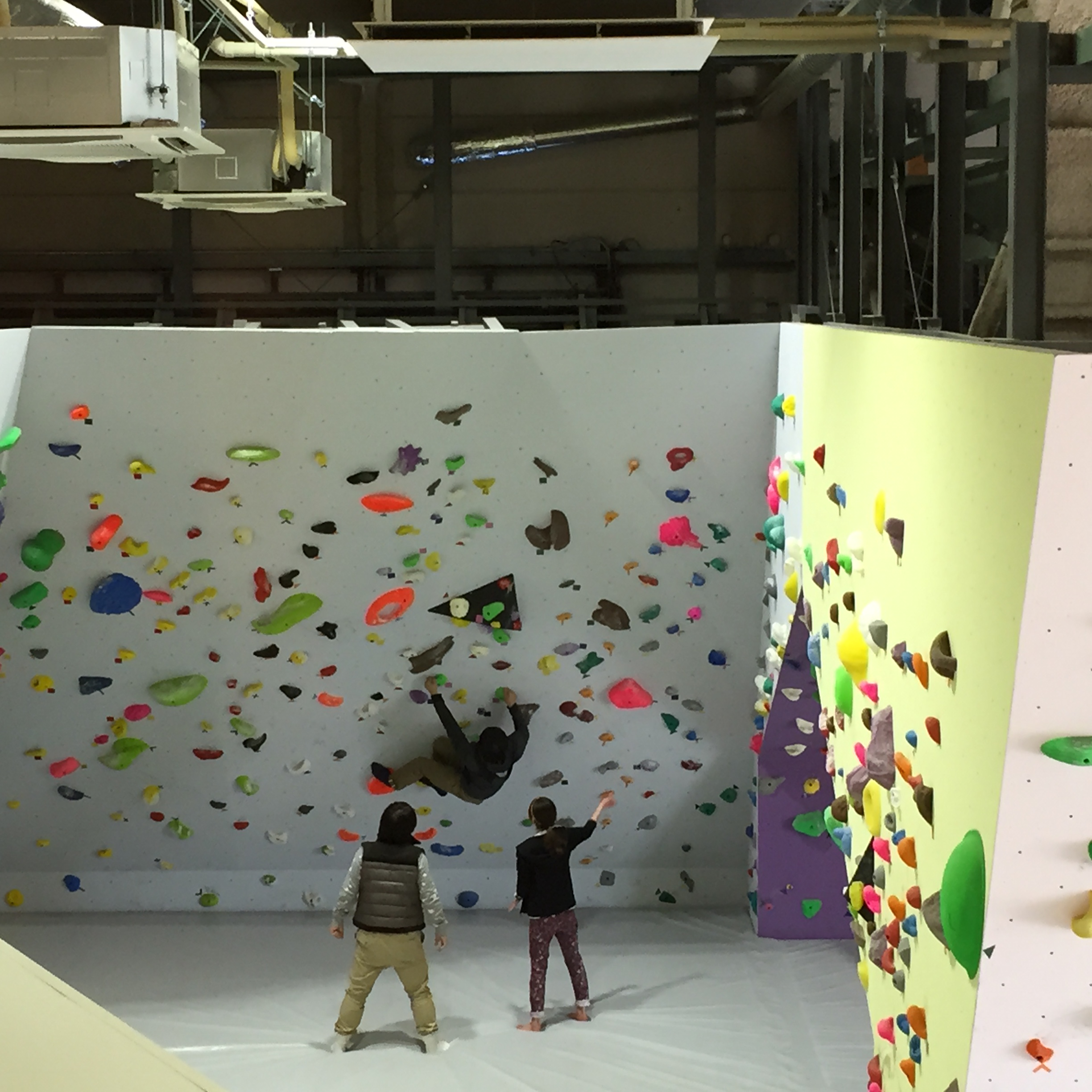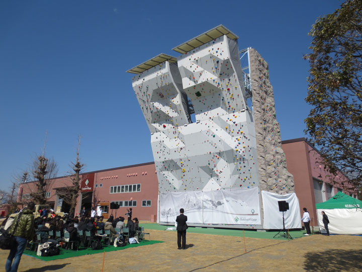 そして最も奥には、アウトドアヴィレッジの象徴ともいえる高さ16.45m、幅11〜15mのド迫力屋外クライミングウォールがそびえ立つ。都内最大級のこのウォールは、最上部が可変するワールドクラスの大会も開催可能なものだ。