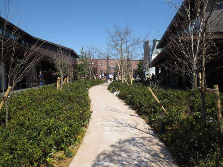 アウトドアに特化した店舗のみがこれだけ集まった商業施設は国内屈指の規模だ。高原のような緑あふれるメインストリート沿いには、国内外のアウトドアブランドの店舗が16も並び(うち2店は飲食店)、どこもブランド最大級の広さを誇る。フルラインナップをそろえメンテナンス窓口も構えるコールマンや、カフェを併設するスノーピークなど、これまでのショップとはひと味違う店舗が多いが、中でもザ・ノースフェイスはギア好きからアウトドアカルチャー好きまで楽しめるようになっていて要注目だ。
