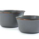 「エナメルミキシングボウル2個セット」(4800円/税別)は、H13.3×D26cmとH10.8×D22.2cmの2サイズのボウルのセット。底が平らなフォルムなので、調理時のボウルとして使っても良し、キャンプの際のシンク代わりに使っても良し。