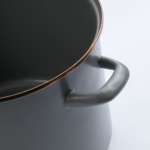 「BAREBONES(ベアボーンズ)」のエナメルシリーズに新たに加わったのは、鍋や皿などの5アイテム。どれも、ストーングレーのエナメル加工を施した琺瑯で、フチにはアンティークなニュアンスのあるカッパー(銅)カラーが施されているのが印象的です。経年劣化するとさらに味わいが増していきます。