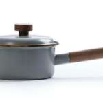 「エナメルソースパン」(4200円/税別)は、ソース作りやインスタントラーメン作りなど、日々の料理に使える便利な鍋。木製の持ち手や蓋の取っ手が柔らかい印象をプラスしています。銅カラーのフチは手作業で仕上げられているので、一点一点微妙に異なる表情も魅力です。