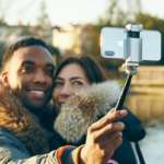 3WAYで使えるシャッターリモコンは、本体グリップ部でも、セルフィースティックのハンドル部でも、好みで付け替えられます。また、取り外して単独で遠隔操作リモコンとしても使えるので、ひとりでの撮影でも広い画角で自撮りも。セルフィーや集合写真に役立ちそうな機能です。