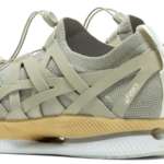 今回発表された「METARIDE AMU」、やはり真っ先に目を奪われるのは、アッパー全面にテープ状の素材が複雑に絡み合うユニークなデザインではないでしょうか。