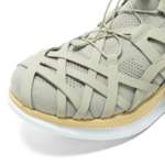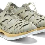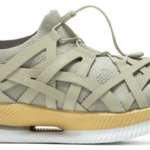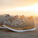 また、隈氏の建築哲学を踏襲して、自然環境への影響にも配慮している点にも注目。木材由来のセルロースナノファイバーを無着色のまま成形したミッドソール材、リサイクル100%の糸で編み込まれたニット部、天然由来の和紙糸を用いたヒールテープ、オーソライトの端材とコルクで成形したスペア中敷きを同梱するなど、自然環境への思いがさまざまな姿で表現された一足。