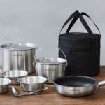 キャンプのメインイベントといえば、豊かな自然の中でいただく楽しい食事。ステンレス+アルミ全面3層構造の「ビタクラフト クックギア ランドクッカーセット」(2万5000円/税別)は、アウトドアで必要なさまざまな調理器具をひとつにまとめた便利なセットです。