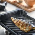 「皮パリ蓋」と名付けた独自形状の蓋もそのひとつ。蓋の上部と左右に通気口が設けてあるのがポイント。この左右の通気口から空気を効率よく取り込みつつ、上部から空気とともに水分を程よく逃がすことで、皮がパリっと焼き上がるのです。さらに、ステンレスの鏡面で遠赤外線を反射させ、食材全体に効率よく熱を伝え、魚の中身はふっくらと焼き上げます。