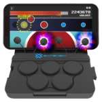 コントローラーにはスタンド機能があり、スマホを立てて遊ぶことも可能。ボタンの数は5個で、2台連結して10個のボタンで遊べます。
