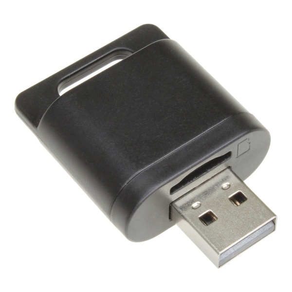 MicroSD/MicroSDHC/MicroSDXCに対応し、約29×43mm、厚さ約13mm、重さ約9.9gのコンパクトサイズ。USB給電方式なので、モバイルバッテリーに接続してカバンに入れておけば、外出先でも気軽に使用できる。日本国内の技術基準適合証明及び認証(TELEC)も受けているので安心だ。