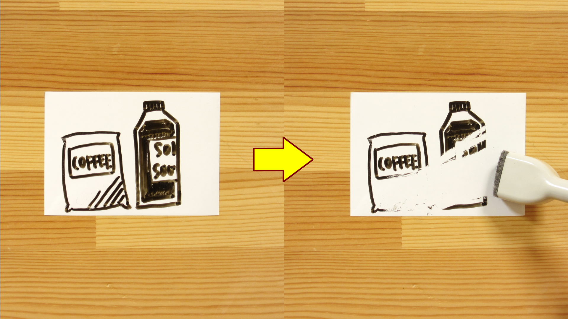 用紙の表面と裏面の素材は異なり、表面は普通の用紙のようにペンや鉛筆などで滑らかに書き込むことが可能。そして裏面はホワイトボード仕様になっており、市販のボードマーカーで書き込め簡単に消すことができるので、何度でも繰り返し使えます。