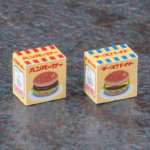商品取り出し口のカバーは可動するので、ハンバーガーの箱を取り出し口に入れられます。ハンバーガーの箱は2個付属。