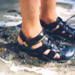 もうひとつの特徴は、つま先部分を覆うクローズドトゥの構造。これにより、足先を川底の石や岩、流木などからガードできます。ナイロン製シャンク(芯材)を内蔵したインソールが土踏まずに沿ってカーブし、凹凸のあるオフロードでの歩行時にもしっかりと足をサポート。アウトソールソールに使用したラバーが濡れた岩場や川底でも高いグリップ力を発揮します。