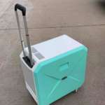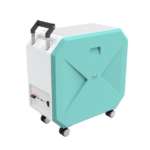 本体サイズは500×500×厚み320mmで、重さは10kg(塩水を除く)。ハンドルと底面部に配された4個のキャリーで移動が楽に行えます。10リットルの水を入れられる水容器、塩の計量に便利な計量カップ、おそうじブラシ、漏斗などが付属します。