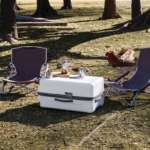 外装部の樹脂素材加え、開閉部のファスナーには撥水加工が施されており、急な雨にも対応可能。キャンプなどのアウトドアシーンでは、横にすればテーブルとして活用することもできちゃいます。アウトドアでのワーケーションを検討中の方は、ぜひチェックしてみては?