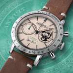 蓄光加工の施されたバトン針とドットインデックス、さり気なく輝くシルバータキメーターが、銀行の金庫室を抜け出すモノポリーの姿を連想させ、遊び心溢れる仕上がりとなっています。
