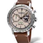 お金をイメージした「The Benjamin」は、アメリカのドル紙幣に印されているアメリカ合衆国財務長官の署名になぞらえ、ダイアルにはスティーブン・ブリス氏のサインが描かれています。また、正真正銘のモノポリー・ボードゲーム米国特許番号(米国特許第2026082号)が巧妙に描かれるなど、ユーモア感が満載。カーフ・ブラウンのベルトがさらにそれを引き締めます。
