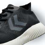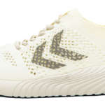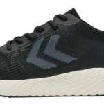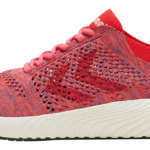 大きな特徴は、アッパーに、ペットボトルから再生したリサイクル繊維を使用したニットを採用している点。ニットなので柔らかく伸縮し、縫い目もなく、優しく足にフィットして履き心地バツグンです。軽くて通気性にも優れているのもこの素材のメリット。サイドにデザインされた、ヒュンメルのトレードマークである“シェブロンライン”がポイントです。