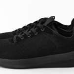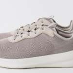 ニットの原料には、国内の廃ペットボトルの再生糸を使用しているほか、インソールにはヴァルカナイズ製法の裁断時に残る生ゴムを原料として使用。さらに、アウトソールはニットの編み目に液状のソール材を食い込ませて接着しており、接着剤は一切使っていません。
