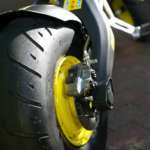 「BEACH MAD」を手掛けたアレッサンドロ・タルタリーニ氏は、イタルジェットの個性派スクーター「ドラッグスター」を生み出したデザイナー。電動バイクながら、ドラッグカーのようなハードなイメージを随所に盛り込むデザインはさすがです。シングルシートにむき出しのサスペンションもワイルドでいい!