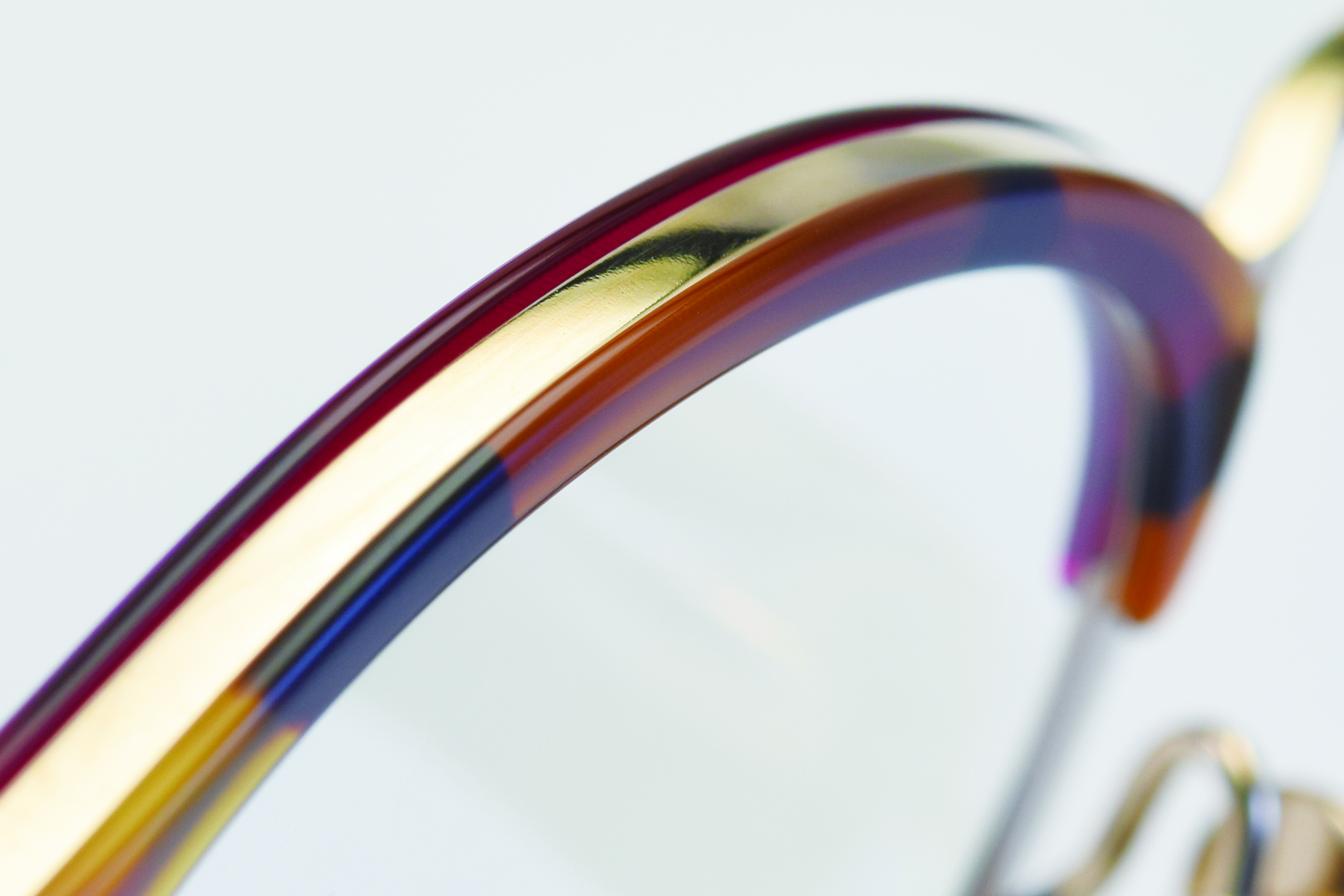 「LOEWY」は、リム(レンズを囲う部分)上面と底面から側面へ向けて光沢がグラデーション状につながるように手作業で加工されている。どれも、これぞ職人仕事という逸品だ。