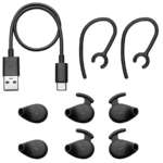 さらに、移動中は安定した装着感に、在宅時は緩めた装着感にするなど、利用シーンに合わせて形状を自在に変えられるフレキシブルイヤーフックが付属。イヤーピースも、標準タイプとより安定した装着感を味わえるサポート付きイヤーピースの2種類が同梱されています。シンメトリー形状のため、左右どちらの耳でも装着可能です。