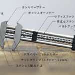 マルチツールとして、モノをしっかりと挟み込んで固定するクランプとしての機能、ボルトやナットを締めるレンチとしての機能、クランプの逆側ではボトルオープナー(栓抜き)と、宅配段ボールのガムテープ部などを開けるボックスオープナーの機能を搭載。