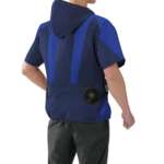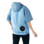 昨シーズンは、主に屋外での作業を想定して長袖アウターと袖なしベストをリリースしていましたが、今年はカジュアルに着こなせる半袖タイプやフード付きタイプをラインナップに拡充。腰に装着したファンから取り込んだ風が太い血管の通っている脇や襟元へと通り抜けるから、より清涼感を実感できそう。
