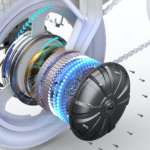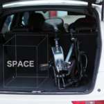 タイヤ径はかなりかわいい14インチ。小径車には「乗り心地がイマイチ」「走りの安定性に欠ける」などの欠点もありますが、「One Week 150」では高性能エアサスペンション、46mmの幅広タイヤの採用などによってこの課題を解決。