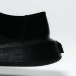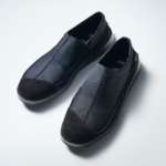 内側と外側で表情の異なるスリップオンの「SHINARI / SR006 SAUNASHI (ソウナシ) 」(2万2000円)は、足袋をイメージソースとした左右非対称な先飾りのパターンが印象的。アッパーにコーデュラを採用しています。