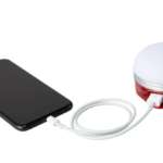 カラナビを使って吊り下げて使うだけでなく、マグネットでスチールポールに取り付けて使用することも可能。リチウムイオン電池内蔵の充電式なので、USBケーブルがあればスマホの充電もできます。