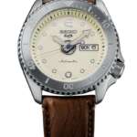 「SBSA103」は、スケートボードのウィールに使われるウレタン素材をイメージしたオフホワイトのカラーをダイヤルに採用。木目調の模様を施したブラウンのカーフストラップをボードのデッキに見立てており、さらに、ウィールとトラックをつなぐアクスルナットを模した六角のインデックスや、ベアリングをダイヤルのセンターにデザインするなど、細部に至るまでこだわりを詰め込んでいます。