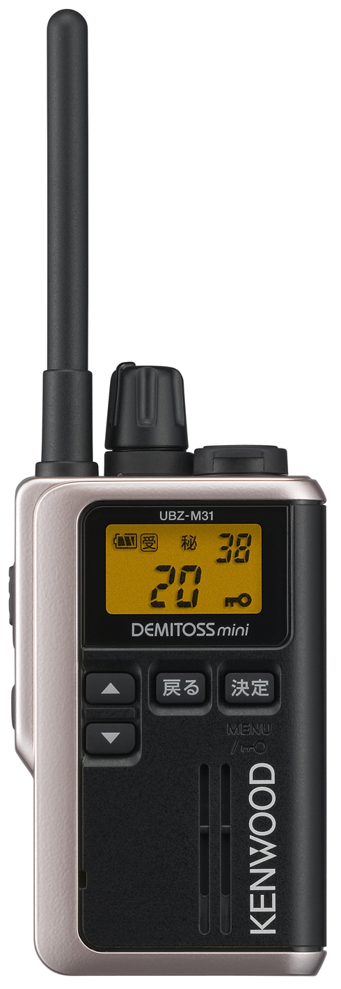 ミニというとおり小型・軽量。単3電池1本で使用できる。「UBZ-M31」(実売価格1万5000円前後)に関してはカラーバリエーションとして、ブラックの他にイエローとシャンパンゴールドがラインアップされており、業務用然としておらず、おなじみのケンウッドのロゴと相まってカジュアルな印象。キャンプで使ってみたくなるデザイン。