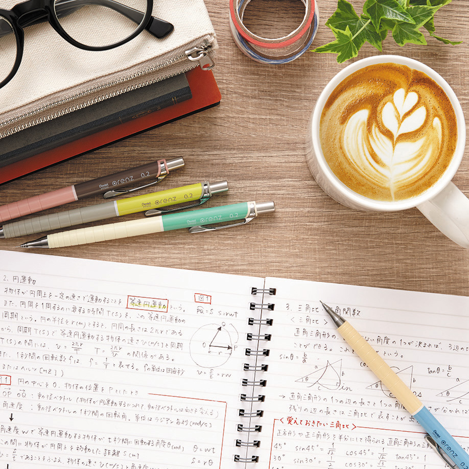 芯の減りに合わせて先端パイプがスライドするという“オレンズシステム”を搭載しているので、シャープペンシル最大の課題であった芯折れを軽減。 さらにパイプの先端のエッジを減らすことで、 従来のシャープペンシル同様の書き心地を実現している。実に機能的なのだ。