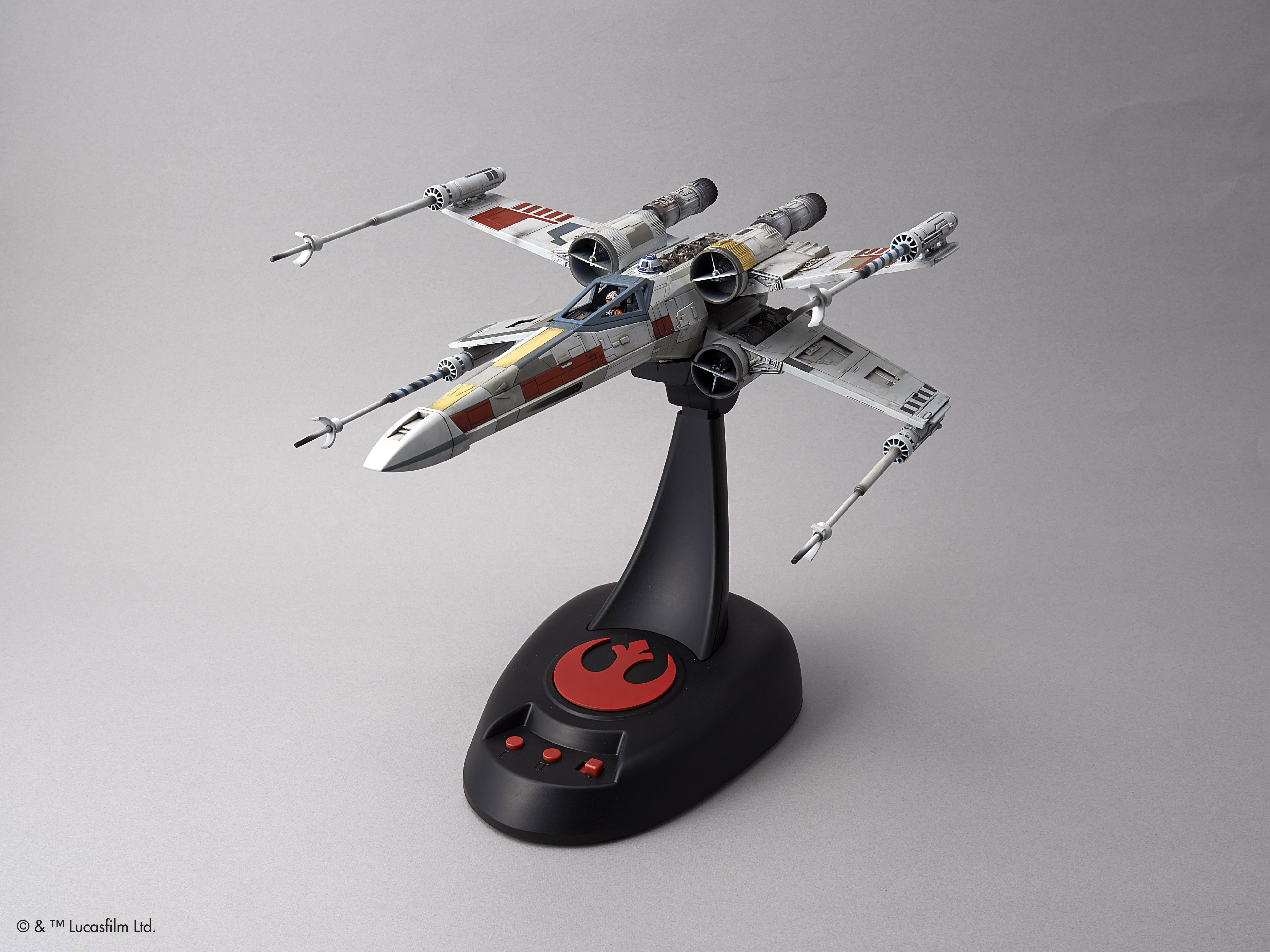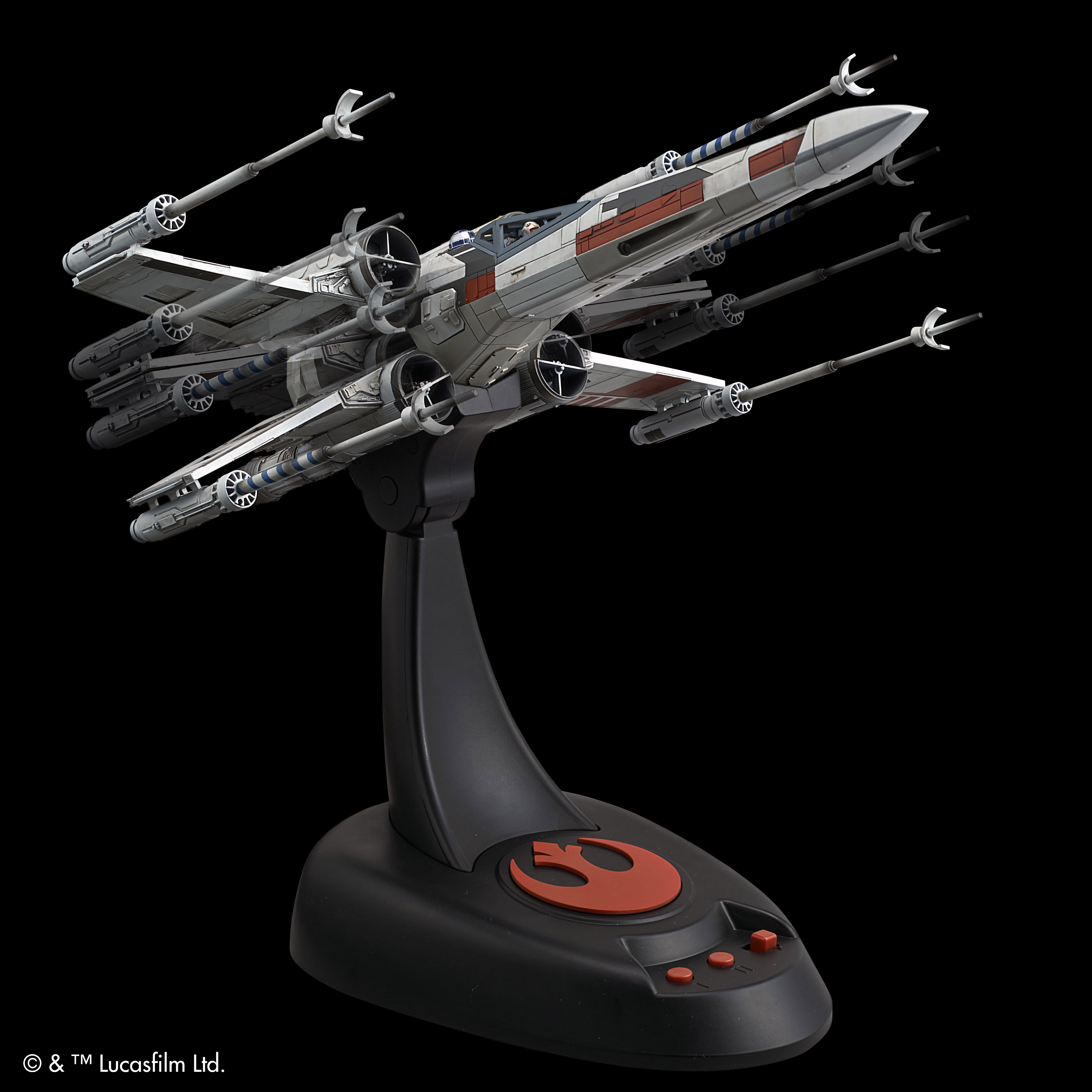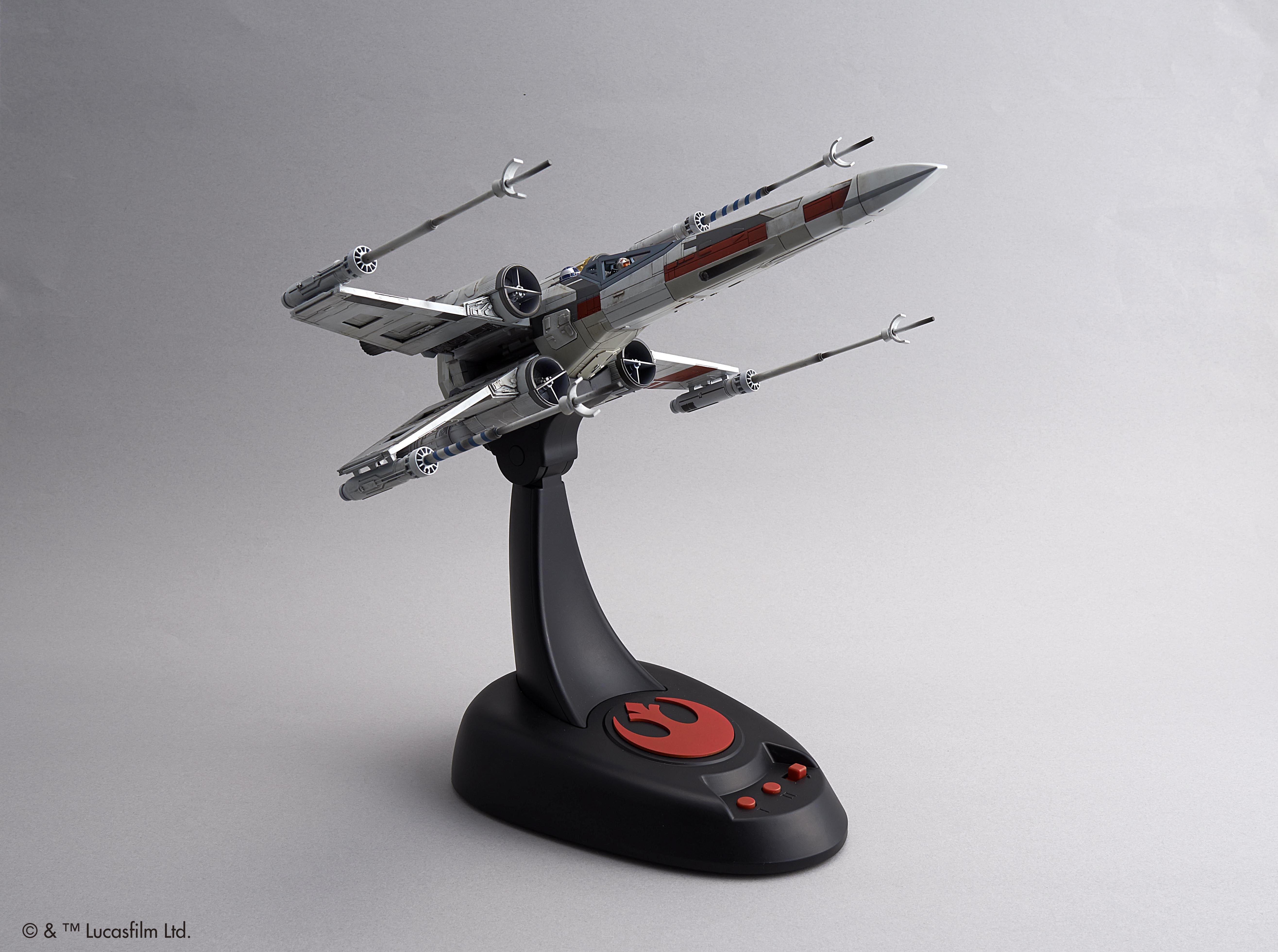 ボタンの組み合わせ操作により通常モード・サイレントモード・デモモード・サイレントデモモードも選択可能。着陸・整備状態を再現するランディングギアと、同スケールのパイロット(着座タイプ・直立タイプ)及びR2-D2も付属されている。