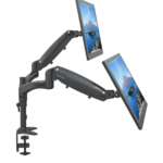 アームはガススプリング式を採用し、こちらも工具を使うことなく高さや向きの調整が可能。設定した位置をしっかりとキープし、モニターの自重による“お辞儀”や垂れ下がりも生じません。また、アームは標準で2本備わっており、デュアルモニターの設置にも対応。