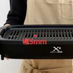 「XGRILL+PLUS」の進化ポイントは、これだけではありません。プレートの縁に傾斜をつけたことで、油が下に落ちやすい工夫が施されています。この傾斜により油ハネを約83%カット、減煙効果も80%とさらにアップ。これなら室内でも、煙やにおいを気にせずに思う存分、焼き肉が楽しめそうです。